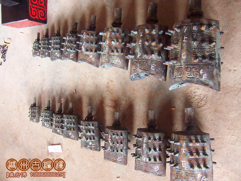 16件晉侯穌青銅編鐘,是我公司董事長、工藝美術(shù)大師王蒲琴女士根據(jù)晉侯穌編鐘設(shè)計(jì)制作,編鐘外形按照晉侯穌編鐘設(shè)計(jì)制作,編鐘為青銅鑄造,采用國際標(biāo)準(zhǔn)樂音音高A=440Hz調(diào)音,可以旋宮轉(zhuǎn)調(diào)演奏古今中外樂曲,編鐘大梁采用優(yōu)質(zhì)松木制作,表面噴漆,彩繪花紋;另配有保管編鐘用的木箱,便于運(yùn)輸和儲(chǔ)存。