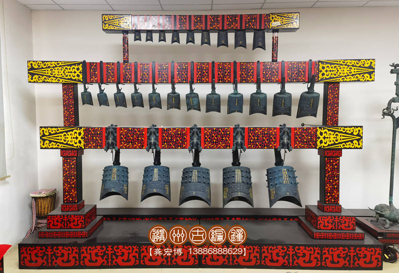 簡(jiǎn)介:26件木結(jié)構(gòu)演奏級(jí)編鐘,是一套專業(yè)演奏類古樂器,整套編鐘分3層懸掛排列,由長(zhǎng)短不同的三根彩繪橫梁和4個(gè)青銅佩劍武士立柱及2根圓立柱組成